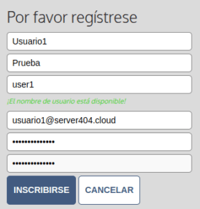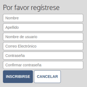 - Llena tus datos como el Nombre, Apellidos, Nombre de usuario, Correo Electrónico y contraseña (introducir 2 veces para validacion con caracteres especiales y numeros).